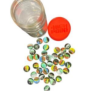 Vintage Glass Marbles Lot of 39 with Jar Multicolor Swirl Shooter Mix