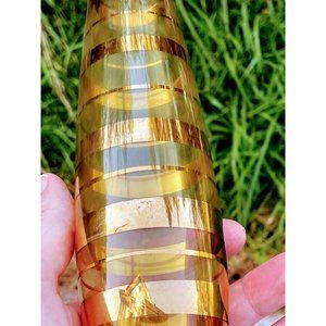 Vintage Glass Mid century Citrine Yellow Gold Stripe Bud Vase Romania