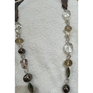 Vintage Glass Necklace Crystal Faceted Round Beaded Brown Ribbon Tie Back Fairy