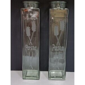 Bring charm and function to your kitchen with this set of 2 vintage-style glass pasta jars. Each tall canister features an etched wheat stalk design with the word Pasta, making them both decorative and practical. Perfect for storing spaghetti, linguine, or other dried goods, these jars add a rustic yet timeless touch to any kitchen counter or pantry.