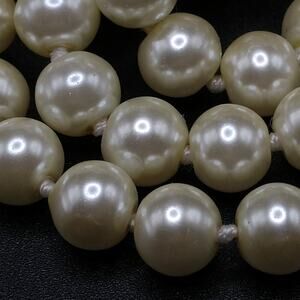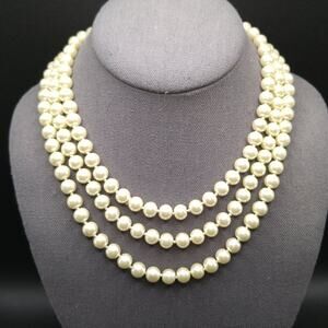 *Description: This is a beautiful vintage glass pearl necklace, approximately 54 Inches in length, no clasp, and all beads are hand-knotted with white thread. This beautiful necklace would look great at a wedding or any formal event. The beads are in wonderful condition. It can be wrapped around your neck at least two times or worn as a single strand with a knot at the bottom or without. This would be a great addition to your jewelry collection or make a great gift!