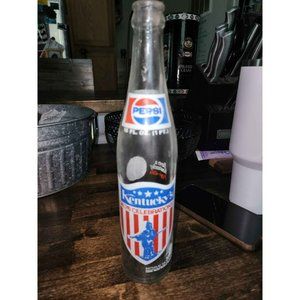 Vintage Pepsi-Cola glass bottle. Graphics are still vibrant and shows Kentucky's 74-76 Celebrations.