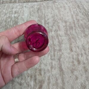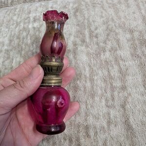 Elegant vintage glass perfume bottle in a striking red hue. Perfect for adding a touch of classic charm to your home decor.