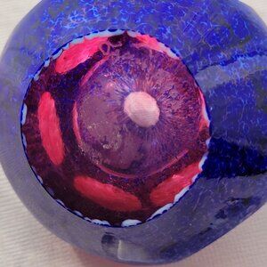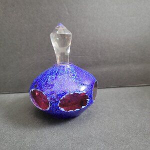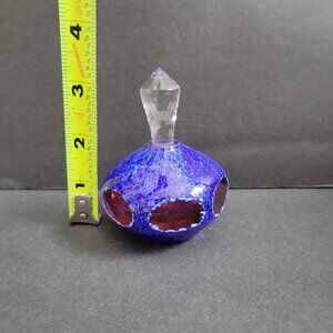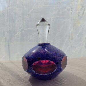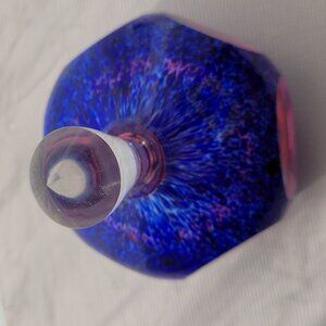This exquisite vintage glass perfume bottle features a vibrant blend of colors, complemented by a clear crystal stopper. Its unique spherical shape adds a touch of elegance, making it a standout piece for collectors or anyone with a taste for sophisticated design.