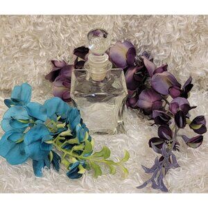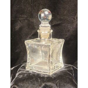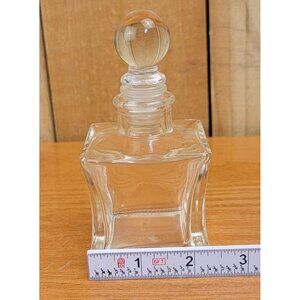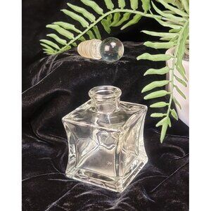 This vintage perfume bottle was crafted in the early 1900's (1920's to 1940's), characterized by its elegant square shape and spherical glass stopper. This type of bottle was popular for holding perfumes, essential oils, or other fragrances, especially in the eras like the Art Deco period (1919 to 1939). Please see the provided photos for further details (artificial plants not included).