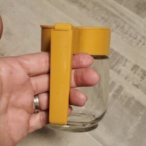 Vintage Glass Mustard Lid Dispenser in good gently used condition and no chips or cracks but it does have a hairline mark on one side of lid. This can be used for so many things, I believe it was for sugar or syrup originally. Cool vintage retro piece. Holds approximately 10oz.