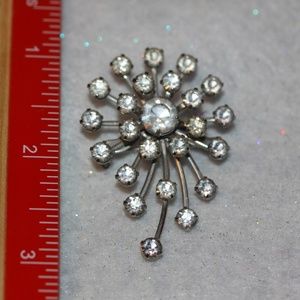 Vintage Glass Rhinestone Silver Spray Brooch Pin