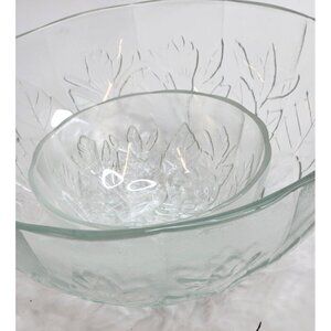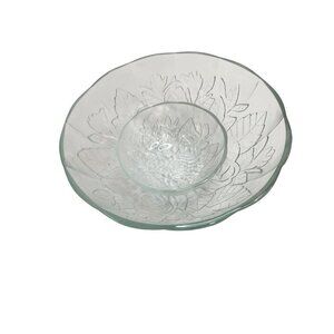 Vintage Glass Rose Pattern Chip and Dip Bowl Set Rose Embossed 9” Serving Bowl