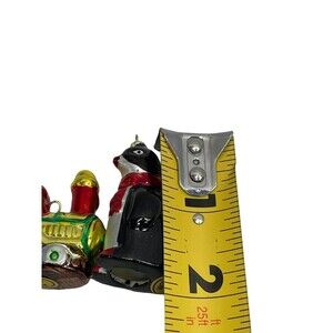 Vintage Glass Santa Holding Doll and Gifts Tree Penguin Metallic Paint