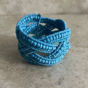 Vintage Glass Seed Bead Handcrafted Braided Wire Cuff Bracelet