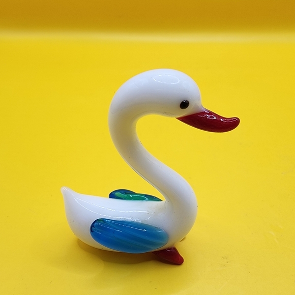 Vintage Glass Swan 1.5" Figurine Hand Blown White Blue