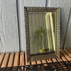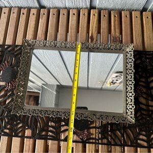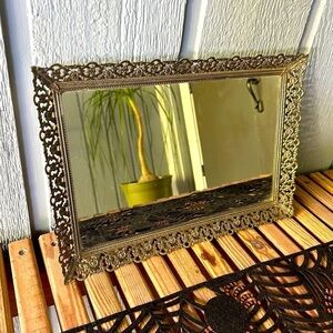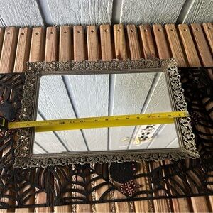 Vintage Glass Vanity Mirror Tray Large Hollywood Regency Brass Mid Century Filigree Rectangle MCM Gold Tone Patina Retro Glam Antique