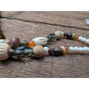 Vintage Glass, Wood & Bone Tribal Necklace, Unisex Beaded Necklace