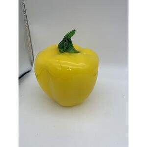 Vintage Glass Yellow Pepper Art Glass Fruit with Applied Green Stem 4"