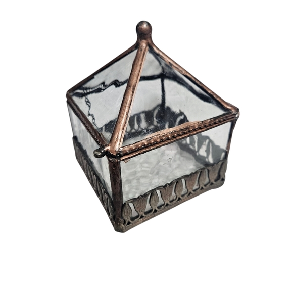 Elegant glass box with bronze accents. Perfect for decor or storage. EUC!!!!!