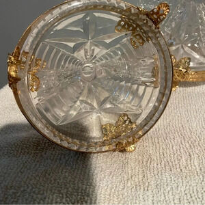 Vintage Glass candlestick holder (set of 2) gold gilded hummingbird