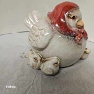 "Vintage Glazed Ceramic Hen Pigeon Family. Mom in scarf with her brood of 3 babes by her side.