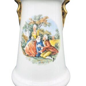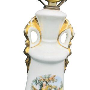Vintage Glazed Gilded Porcelain Lamp, Table Lighting Decor, Classic French Victorian Boudoir, Romantic Courting Couple George and Martha Washington