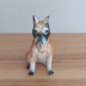 Vintage Glazed Porcelain Boxer Sitting Dog Figurine Unmarked 3.5"