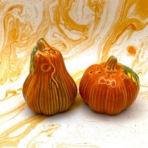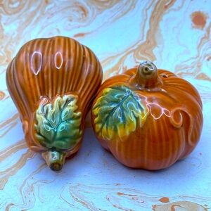 Vintage Glazed Pottery Ceramic Pumpkin Gourd Salt And Pepper Shakers Decor