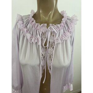 Vintage Glencraft Lingerie Women's M 100% Nylon Purple Robe Open Front Lace Trim