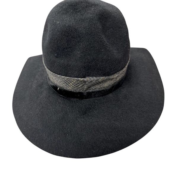 Vintage Glenover Black Wool Leather Trim Womens Hat Boho