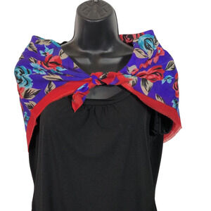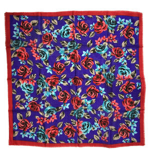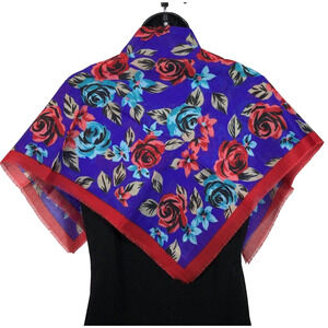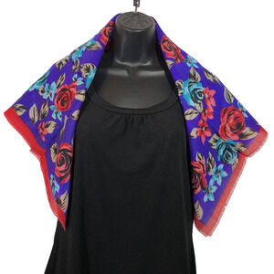 Vintage Glentex 30" Square Scarf Purple Background with Red and Teal Blue Floral w/ Fringe, Japan Made