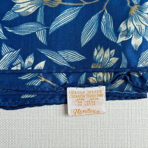 Vintage Glentex Blue Floral Patchwork Scarf 20.5" x 20.5" Made In Japan