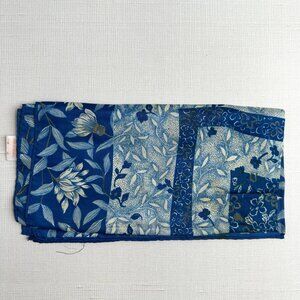 This square scarf features a vibrant floral patchwork design in shades of blue and white. Lightweight and soft, it adds a touch of elegance to daily wear.