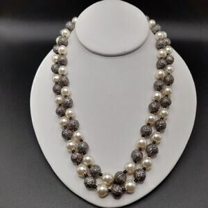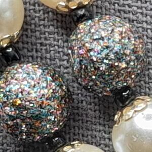 *Description: This is a unique vintage necklace with glitter beads and glass pearls on two strands with a glitter box clasp from the 1950s. The glitter is multicolored. The style of necklace is similar to the necklaces made in Japan and Western Germany with art beads. This would be a great addition to your jewelry collection or make a great gift!