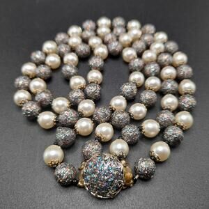 Vintage Glitter Bead Necklace, Glass Pearls, Art Beads, 1950s Jewelry