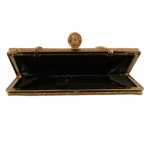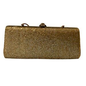 Vintage Glittery Gold Evening Clutch Handbag With Chain Strap Rhinestone Clasp