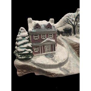 Vintage Glittery Winter Ceramic Bisque Carriage Houses Marked Howell Ceramics