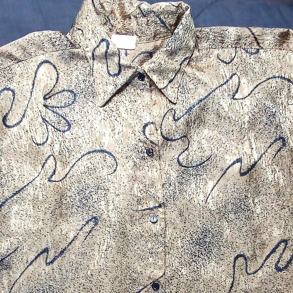 Vintage Gloria Dee Abstract Strokes Gold Polyester Disco Shirt - Made in USA - Size 42, Measures p2p=28" Length=28" Sleeve Length=18" - Excellent Condition