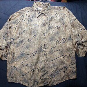 Vintage Gloria Dee Abstract Strokes Gold Polyester Disco Shirt