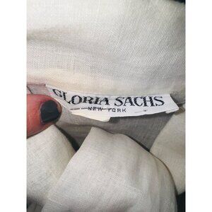 This vintage Gloria Sachs blouse offers an elegant touch with its pleated front and ruffled accents. Designed in a classic style, this blouse is perfect for a sophisticated look. Crafted from breathable cotton, it ensures comfort while maintaining a timeless appeal. Ideal for formal occasions or as a statement piece in your wardrobe.