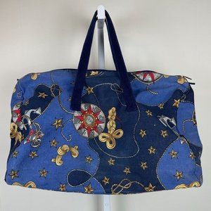 Vintage Gloria Vanderbilt Blue Canvas Nautical Anchor Large Duffel Bag