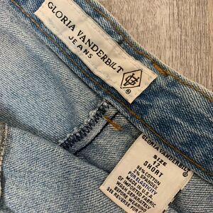 Vintage Gloria Vanderbilt light wash ultra high waisted rise straight/slightly tapered leg, jeans. No back pockets.