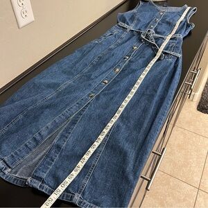 Vintage Gloria Vanderbilt denim midi/maxi dress, buttondown, sleeveless, size M
