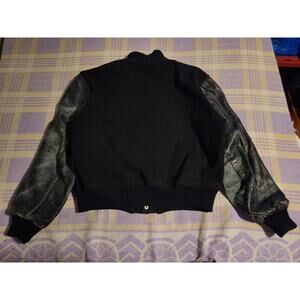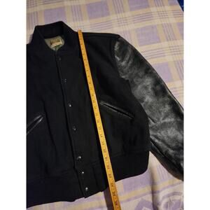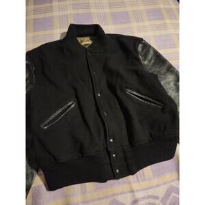 Vintage Gluv Elf Leather Wool Stadium Varsity Jacket Black Button Rare 50s 60s