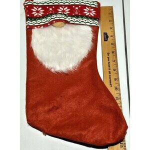 Vintage Gnome Christmas Stocking Pair Fur White Beard Nose Red Gray 18" NWT NOS