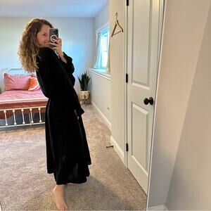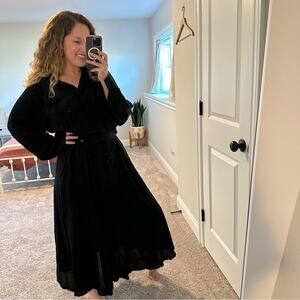 I adore this stunning vintage Go Silk black pure silk long sleeve button front maxi dress