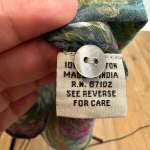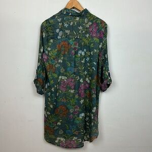 Vintage Goa Green Floral Embroidered Button Down Shirt-Dress Top Sz M