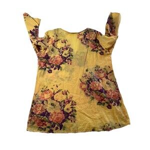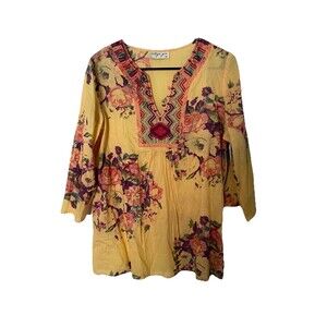 Vintage Goa NWT Blouse Size M Yellow Floral Boho Embroidered