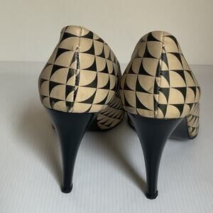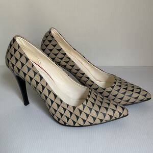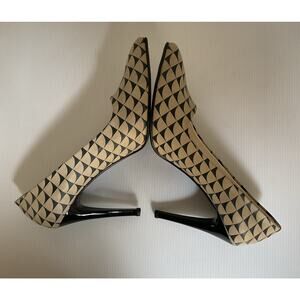 Goby Geometric Print High Heels Made in Turkey Size 40 (US 9.5) Black Beige Vintage