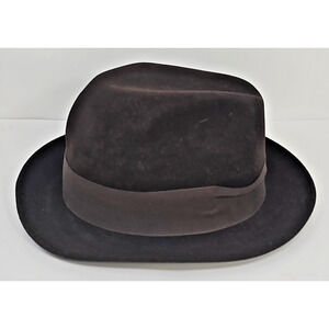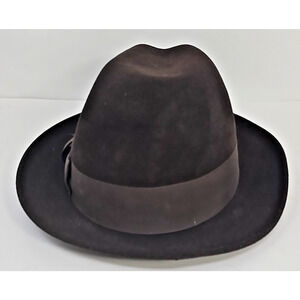 Vintage Godfather Dyna Felt Fedora Brown Hat W/ Feathers 7 1/8" Bee Hats U151