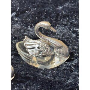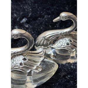 Vintage Silver-Plated Swan Figurines With Crystal Bases