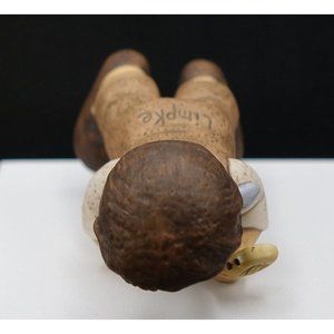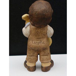 This darling boy is dressed in brown what looks like overalls with a white shirt underneath and a blue kerchief. He has brown hair and brown eyes. He is playing a beige/tan guitar. On the right foot, it reads "Nina Marcos/Goebel" and on the backside (on his rear) reads "Limpke." This figurine stands approximately 3.75" tall and is in great condition. There is what appears to be sticker residue on the feet. I have not tried to clean it off as I was concerned about also removing the stamping.