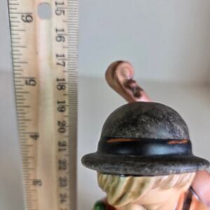 Charming vintage Hummel of a young traveler carrying a cello and walking stick. Authentic HUM 89/1 “Little Cellist” with incised M.I. Hummel signature on the base and blue Goebel W. Germany backstamp (TMK-5). Approx. 5.25" tall; displays beautifully. Carefully inspected—no obvious chips or cracks seen; please review photos for condition.