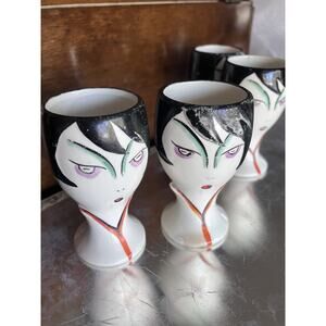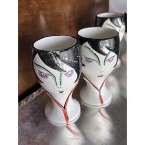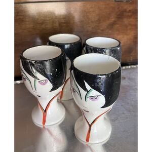 Vintage Goebel Porcelain Egg Cups Art Deco 1930s Germany Set of 4 Face Vases